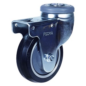 支架:冲压脚轮座,使用强化热处理的双重钢珠槽旋转结构,一体化冲压支架,使用旋转部位防尘盖,可同时锁轮子和旋转部位的踏板双刹系统,螺栓式轮轴紧固构造